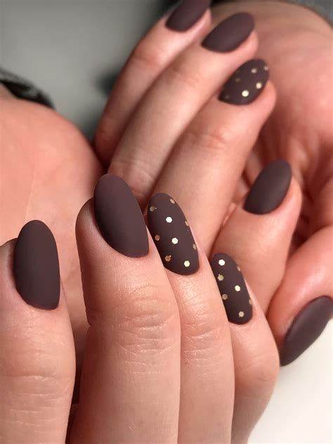 These nails bring a warm and classy vibe with their rich matte brown shade, perfect for the cozy feel of fall. The touch of soft golden dots adds just the right hint of charm, making the look playful yet sophisticated. Simple, stylish, and versatile, they’re an effortless way to elevate your everyday manicure.