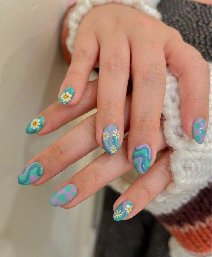 These are also a unique way of making nails with these little daisies. I love the swirls they made on nails. The combination of colors they choose looks so beautiful for summer.